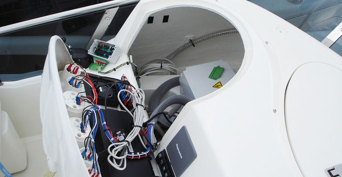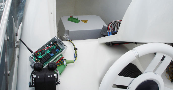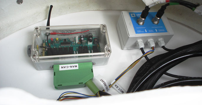U hoeft alleen de ontvanger aan te sluiten op de motorbediening, de boeg- en hekschroef joysticks, en de schakelaar van het ankerlier (afhankelijk van het systeem dat zich aan boord bevindt).